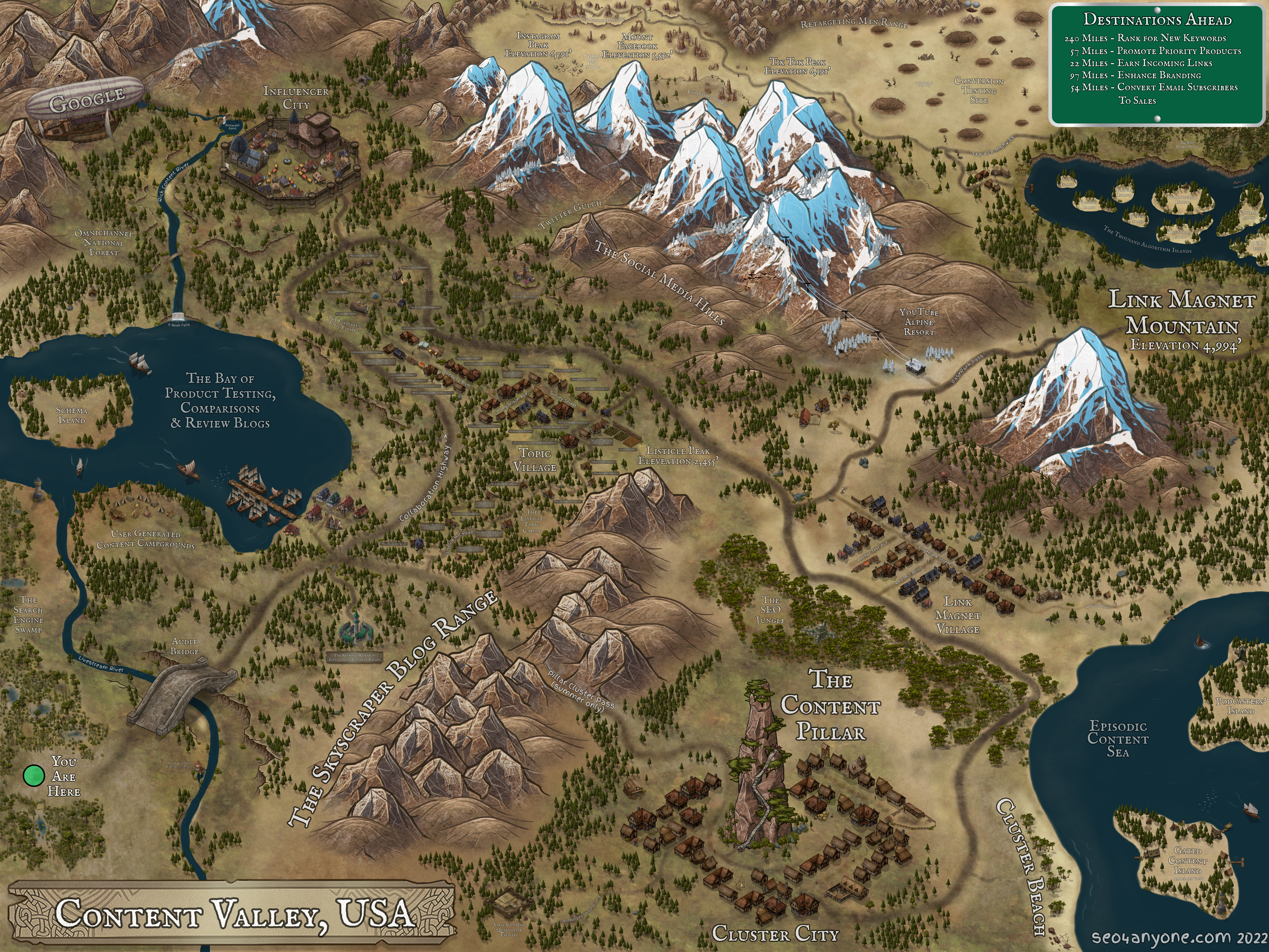 The Content Valley roadmap is part art, part reference. Content Valley is a starting place for content roadmap generation and brainstorming. This is a true marketing roadmap if there ever was one.